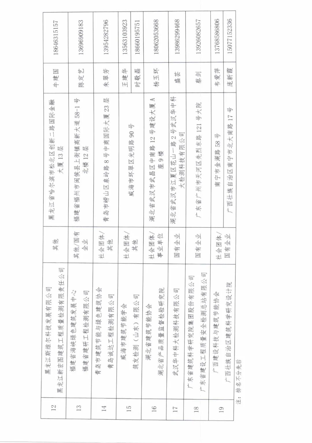 19 | 广西建设科技与建筑节能协会 | 社会团体/国有企业 | 南宁市金湖路58号 | 韦爱萍 | 13768586806 |