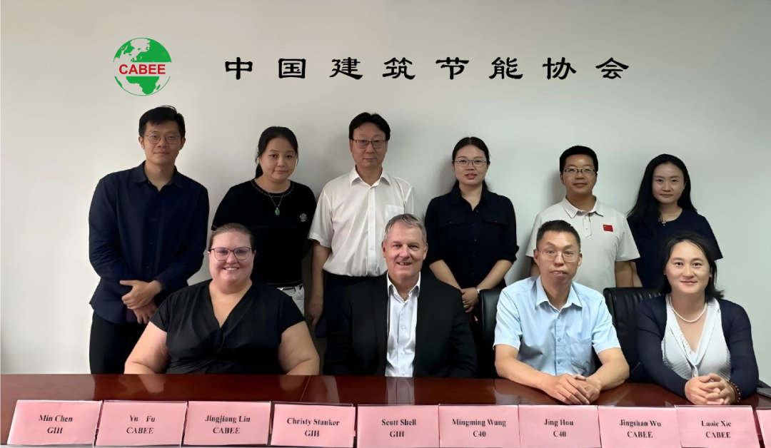 2025年9月15日,全球工业中心(Global Industry Hub ,简称GIH)战略专家Scott Shell先生、高级项目专员Christy Stanker女士,C40城市气候领导联盟(C40 Cities Climate Leadership Group,简称C40)中国项目发展主任汪明明女士、中国重点行业部门副主任侯静女士一行到访中国建筑节能协会,与中国建筑节能协会秘书长吴景山等就国内外建筑领域脱碳路径相关议题进行座谈交流。