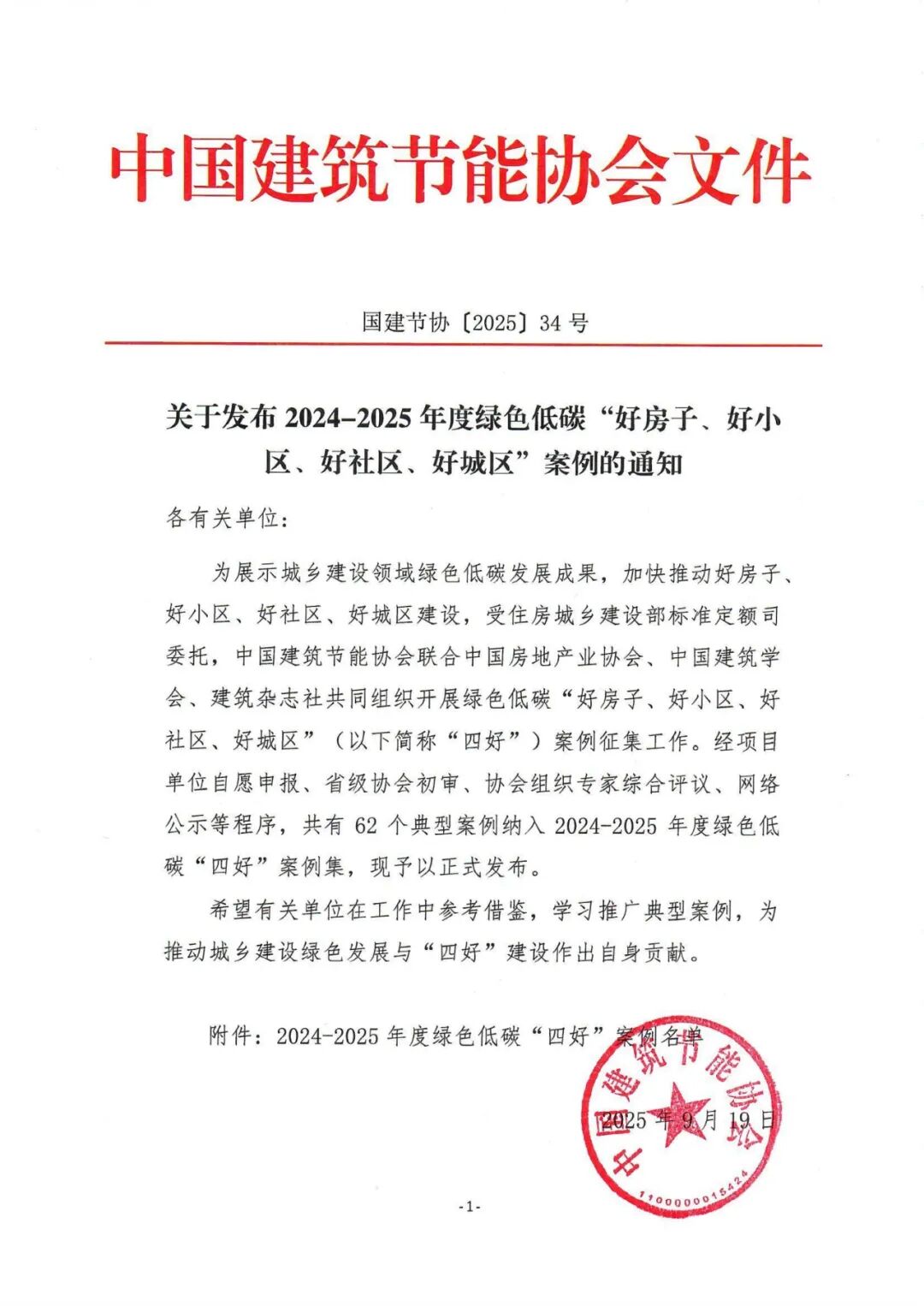 关于发布 2024-2025年度绿色低碳“好房子、好小区、好社区、好城区”案例的通知