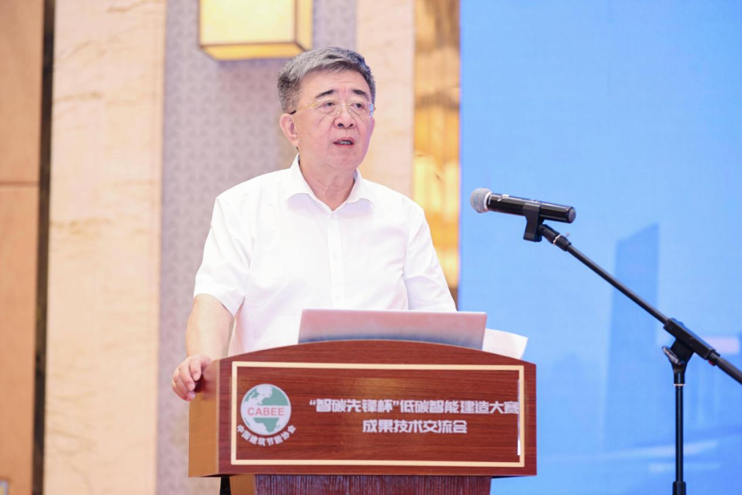 交流会开始的致辞环节,中国建筑节能协会会长倪江波首先作致辞,倪会长立足全球气候治理背景,深刻阐述了 “智碳先锋杯” 大赛对实现 “双碳”目标与推动行业转型的双重价值,深入剖析了技术融合、全周期低碳实践等创新亮点。他致辞中指出,大赛以“智领低碳建筑、创享绿色未来”为主题,积极响应“双碳”目标,推动智能建造与低碳技术深度融合,呈现技术集成模式、全生命周期低碳实践、模式创新三大亮点。为推动创新成果惠及民生,他提出三点倡议:让创新技术赋能城市更新、让智能建造引领产业升级、让绿色理念融入民生工程。最后,他呼吁企业、高校和科研机构、有关部门共同担当,携手推动城乡建设领域节能降碳高质量发展,为实现全球气候治理目标贡献力量。