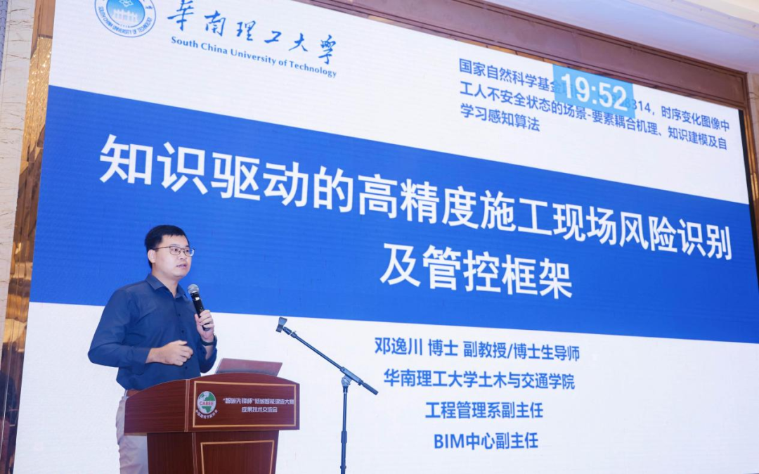此外,华南理工大学土木与交通学院工程管理系副主任邓逸川教授以《知识驱动的高精度施工现场风险识别及管控框架》为主题,结合案例阐述高精度施工现场风险识别在提升施工现场安全管理水平的实用价值;工信部5G应用产业方阵智能建造工作组副组长、教授级高工赵静主任分享了行业大赛组织策划、评审标准及成果转化的经验,为后续行业赛事举办提供了宝贵借鉴。
