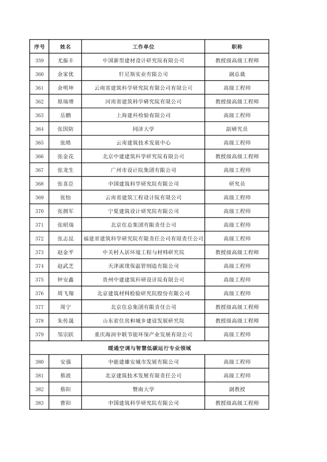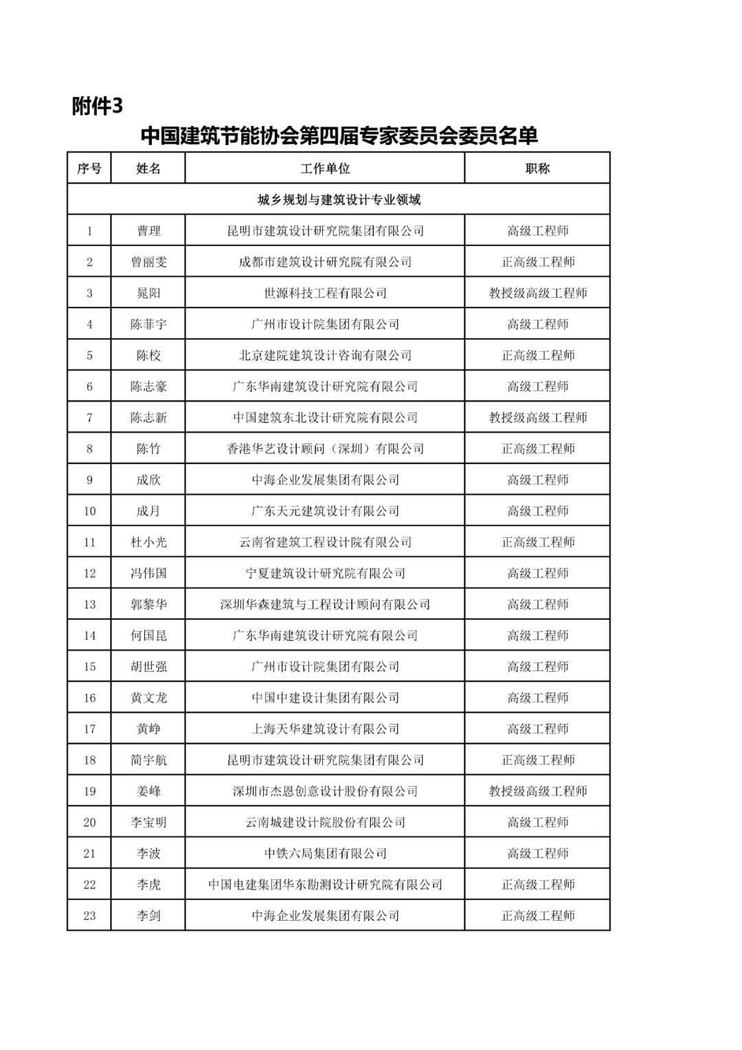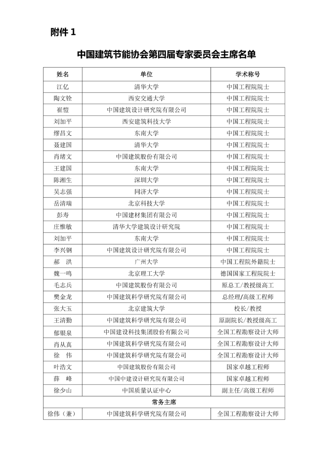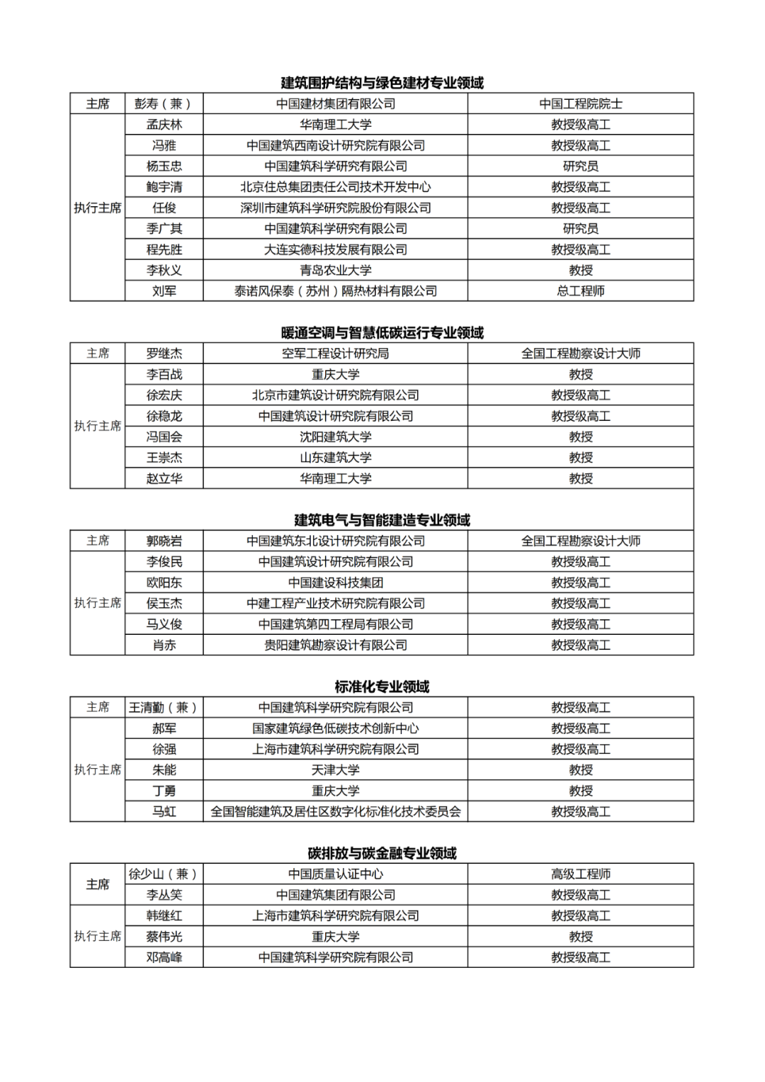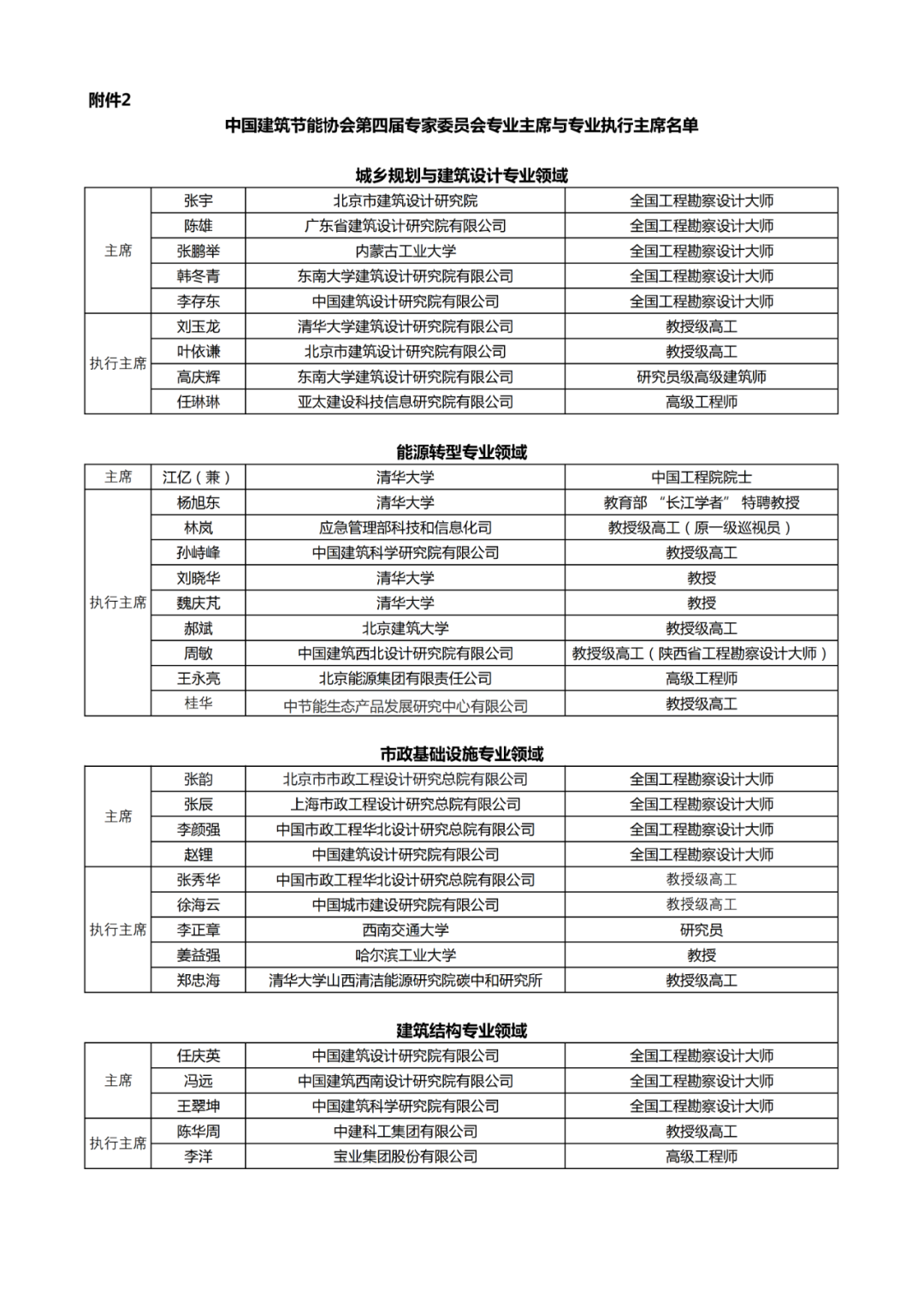 2、中国建筑节能协会第四届专家委员会专业主席与专业执行主席名单