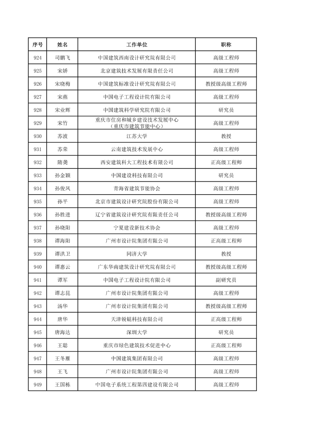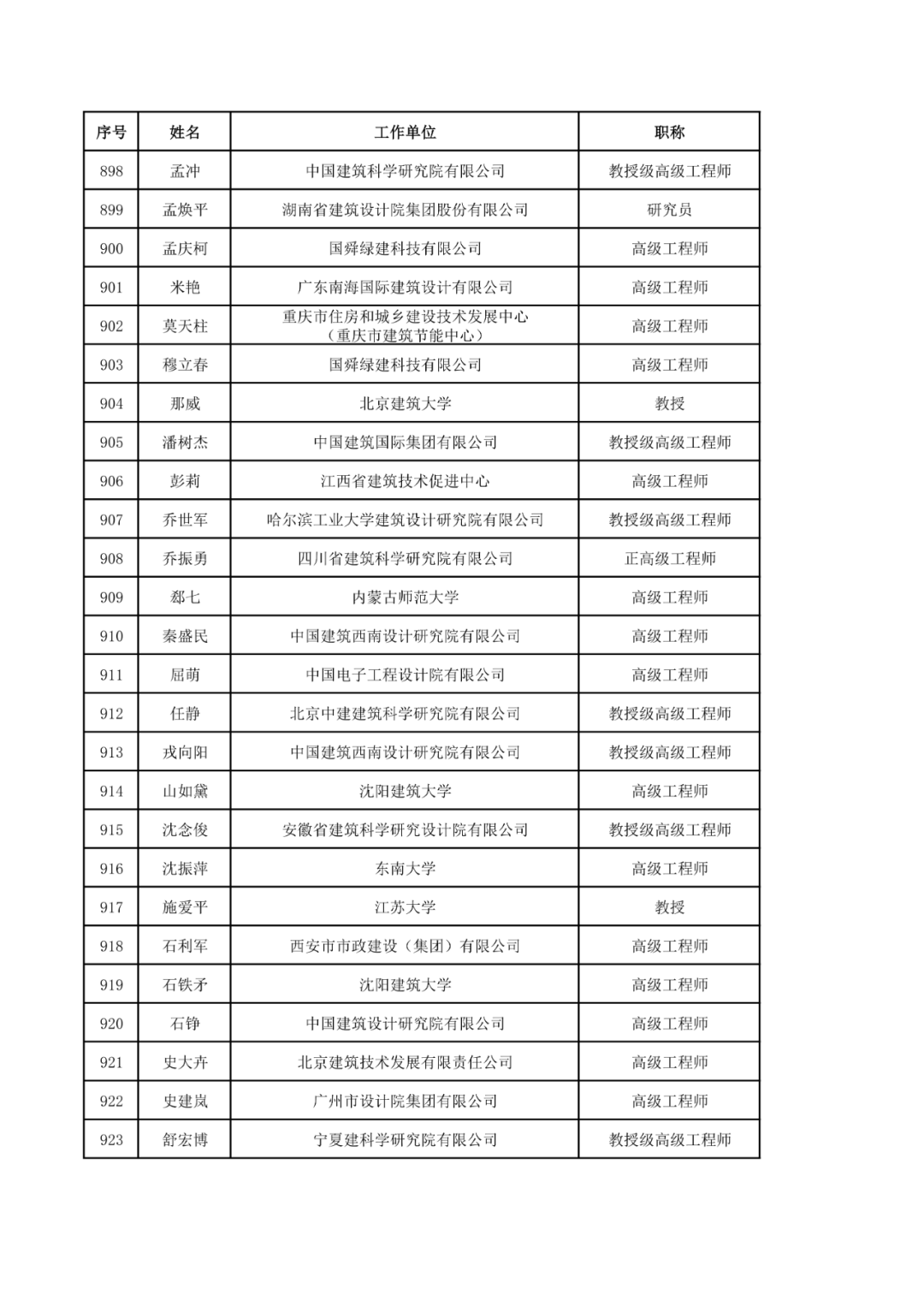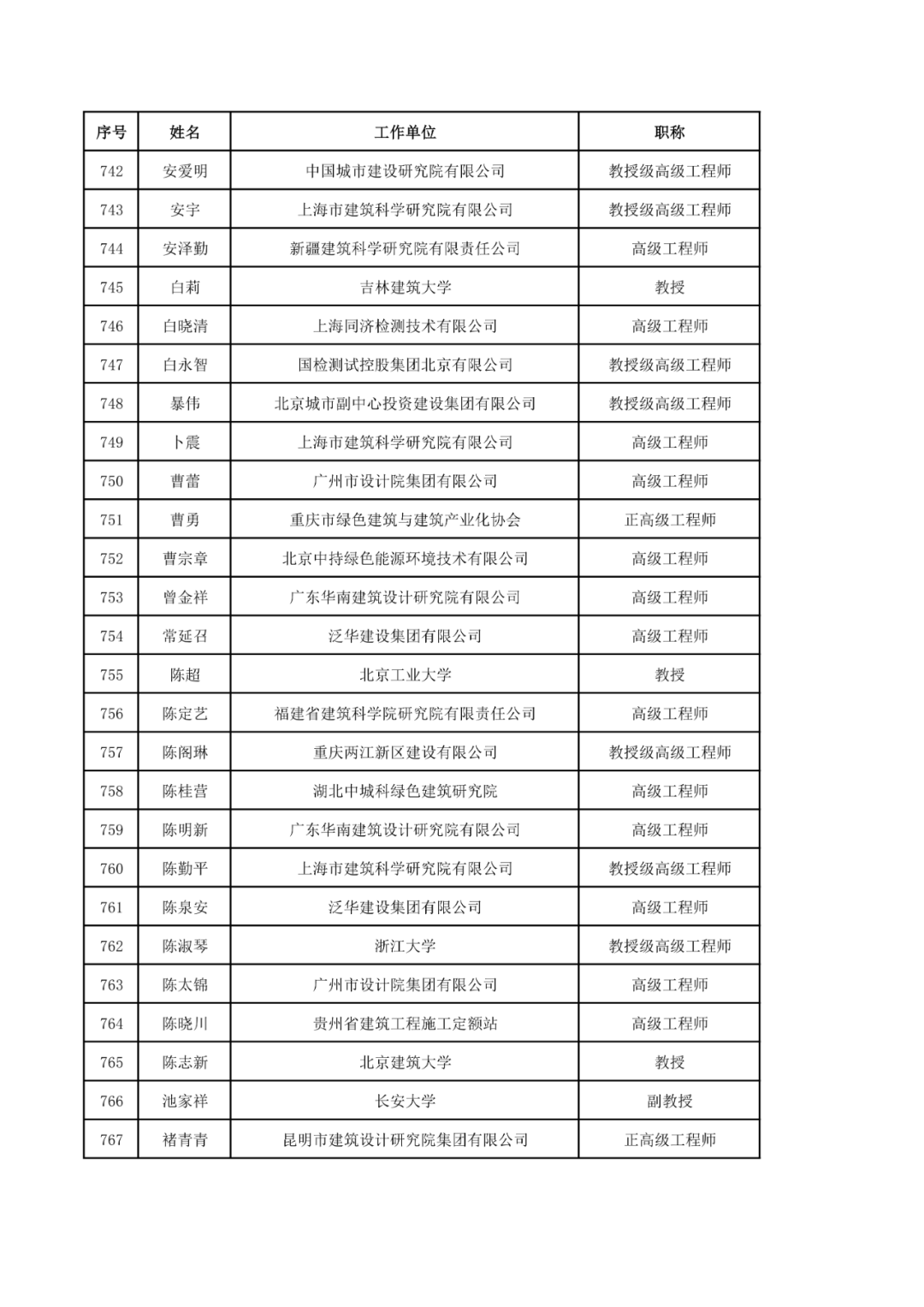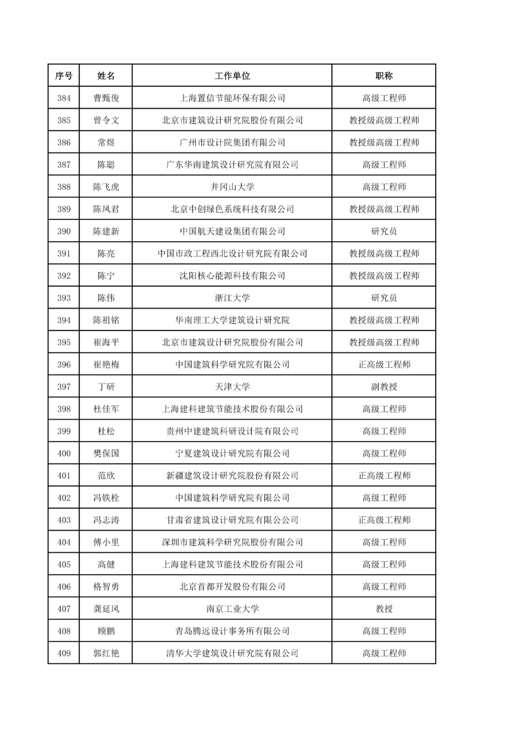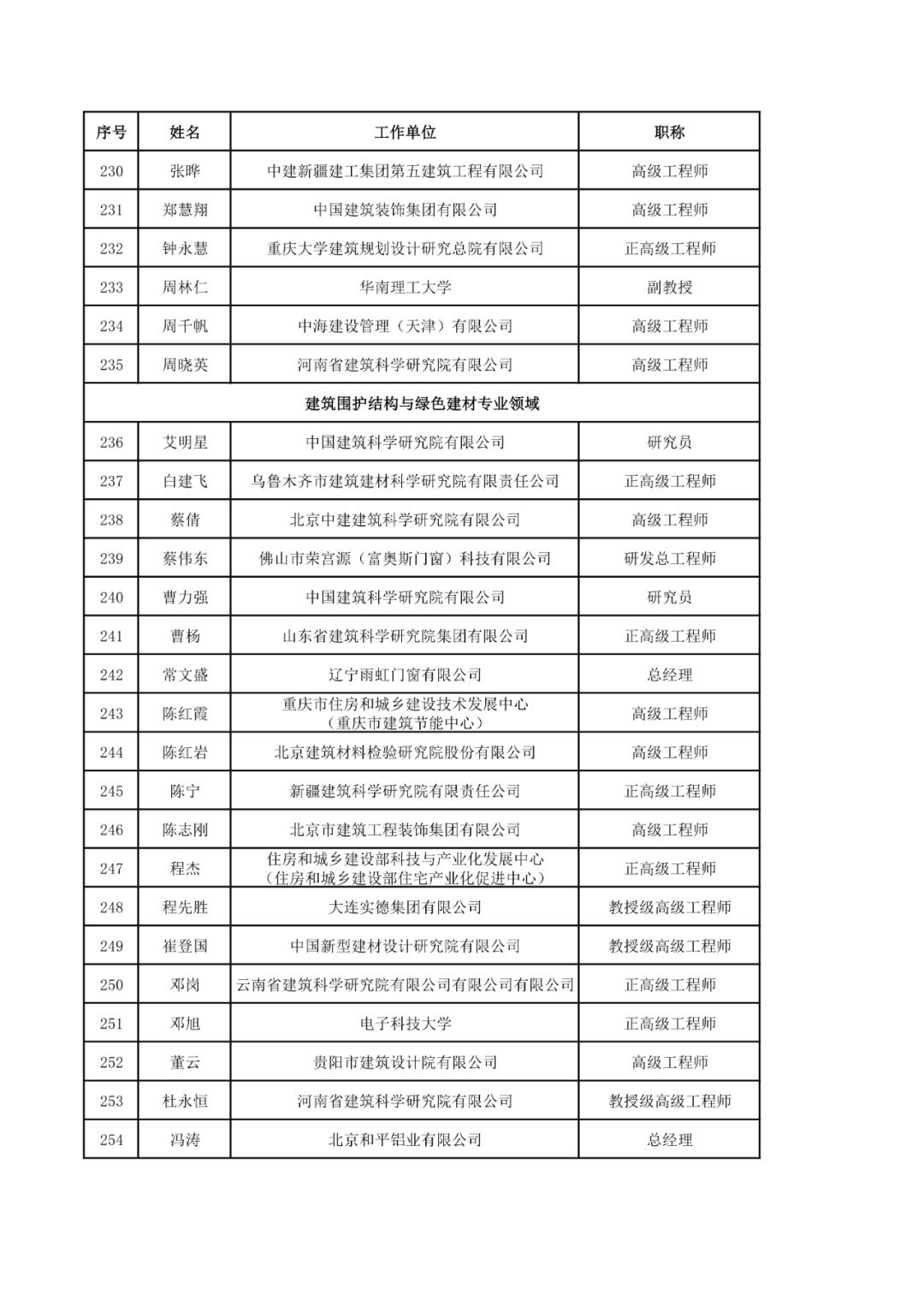 2、中国建筑节能协会第四届专家委员会专业主席与专业执行主席名单