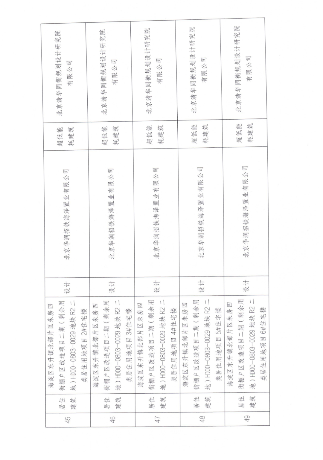 45 | 居住建筑 | 海淀区东升镇北部片区朱房四街棚户区改造项目二期(剩余用地)HD00-0803-0029地块R2二类居住用地项目2#住宅楼 | 设计 | 北京华润招铁海泽置业有限公司 | 超低能耗建筑 | 北京清华同衡规划设计研究院 有限公司 |