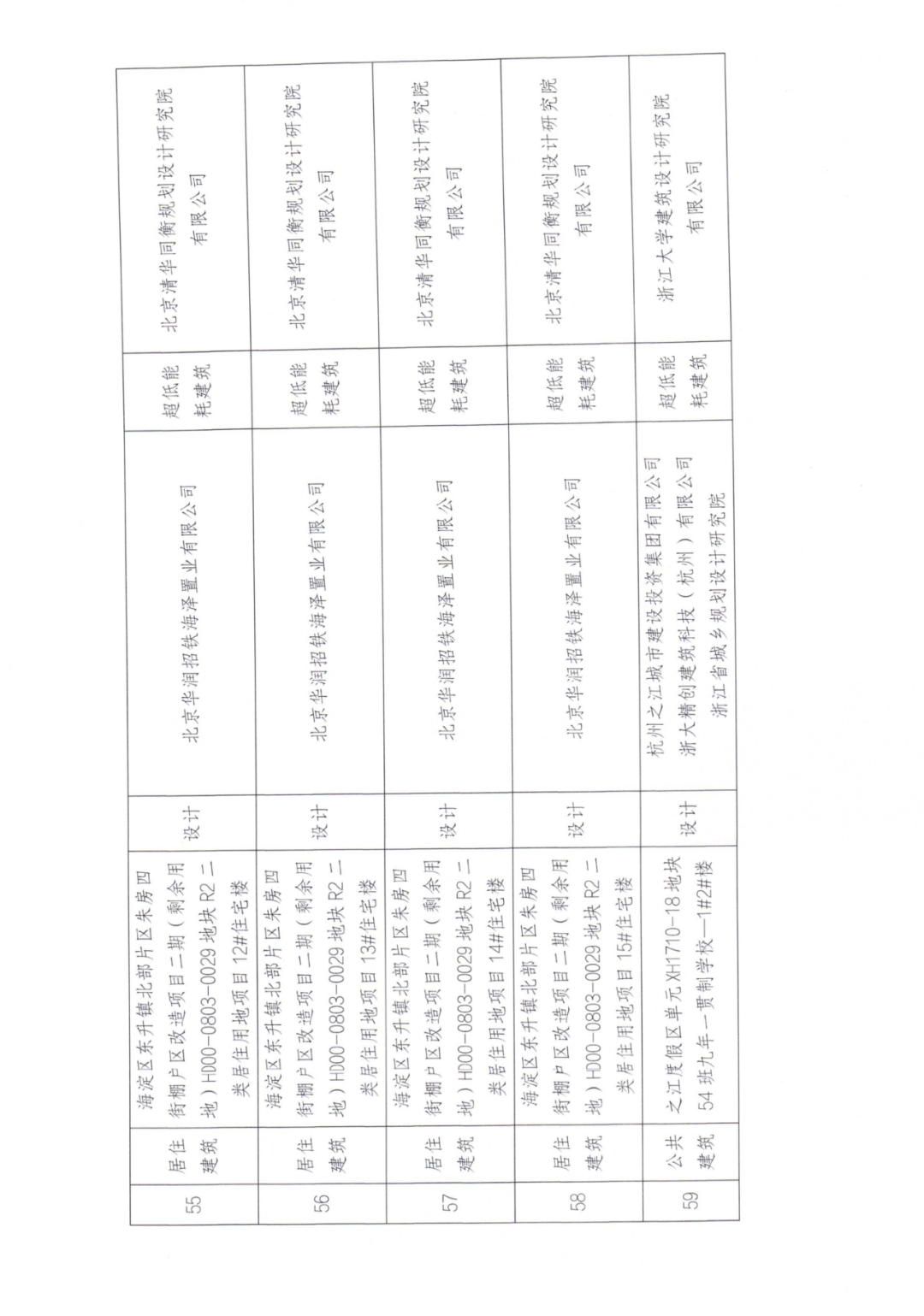 58 | 居住建筑 | 海淀区东升镇北部片区朱房四街棚户区改造项目二期(剩余用地)HD00-0803-0029地块R2二类居住用地项目15#住宅楼 | 设计 | 北京华润招铁海泽置业有限公司 | 超低能耗建筑 | 北京清华同衡规划设计研究院 有限公司 |