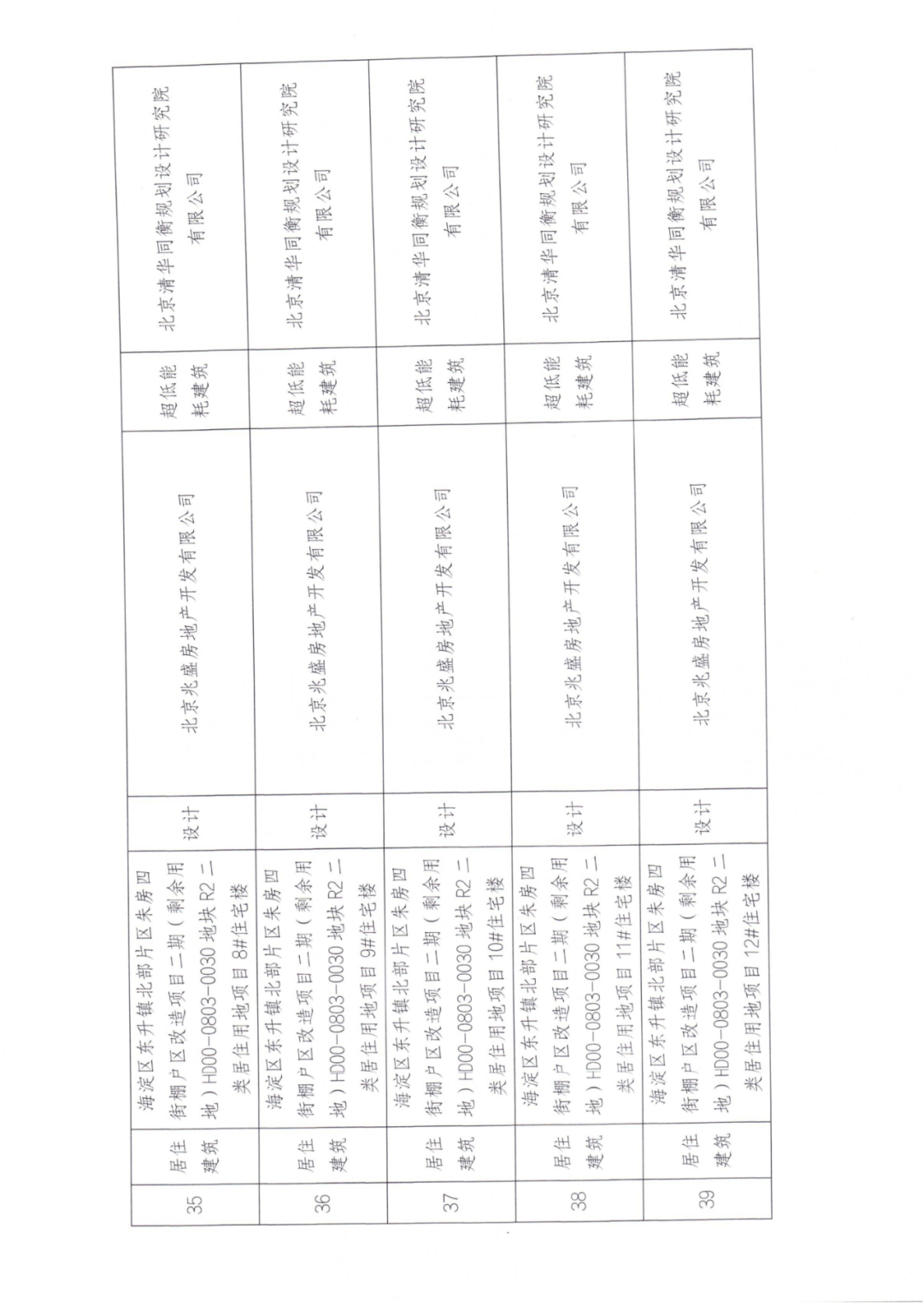 39 | 居住建筑 | 海淀区东升镇北部片区朱房四街棚户区改造项目二期(剩余用地)HD00-0803-0030地块R2二类居住用地项目12#住宅楼 | 设计 | 北京兆盛房地产开发有限公司 | 超低能耗建筑 | 北京清华同衡规划设计研究院 有限公司 |