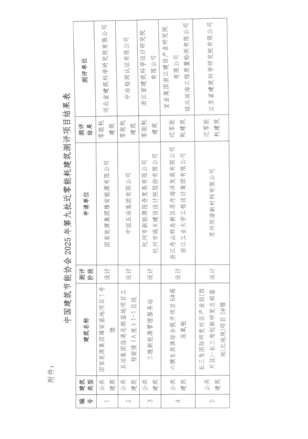 附件:《中国建筑节能协会2025年第九批近零能耗建筑测评项目结果表》