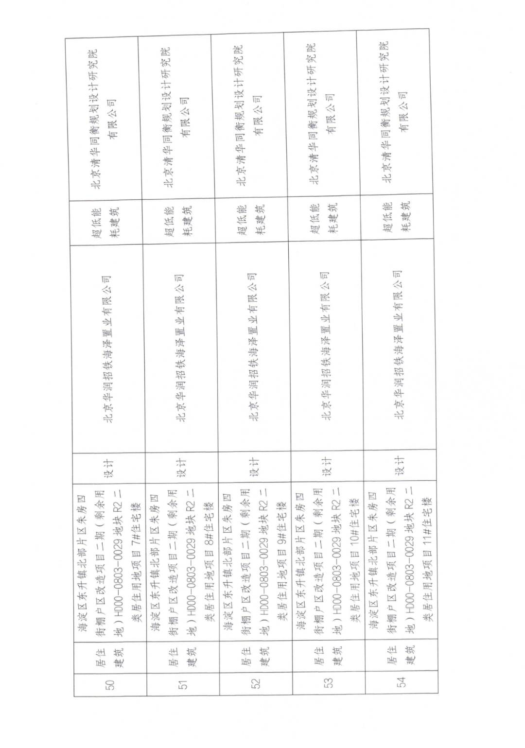54 | 居住建筑 | 海淀区东升镇北部片区朱房四街棚户区改造项目二期(剩余用地)HD00-0803-0029地块R2二类居住用地项目11#住宅楼 | 设计 | 北京华润招铁海泽置业有限公司 | 超低能耗建筑 | 北京清华同衡规划设计研究院 有限公司 |