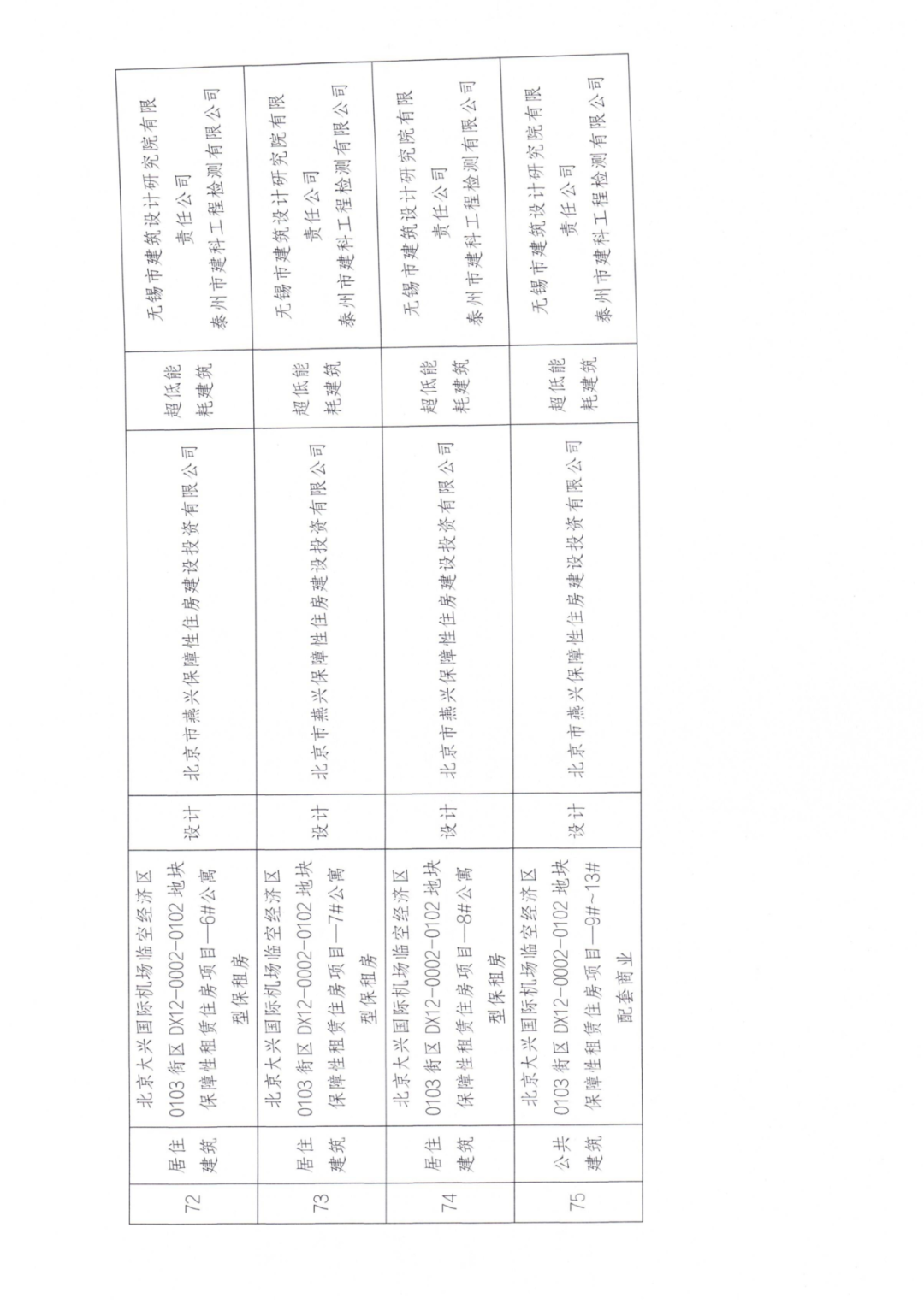 72 | 居住建筑 | 北京大兴国际机场临空经济区0103街区DX12-0002-0102地块保障性租赁住房项目—6#公寓型保租房 | 设计 | 北京市燕兴保障性住房建设投资有限公司 | 超低能耗建筑 | 无锡市建筑设计研究院有限 责任公司 |