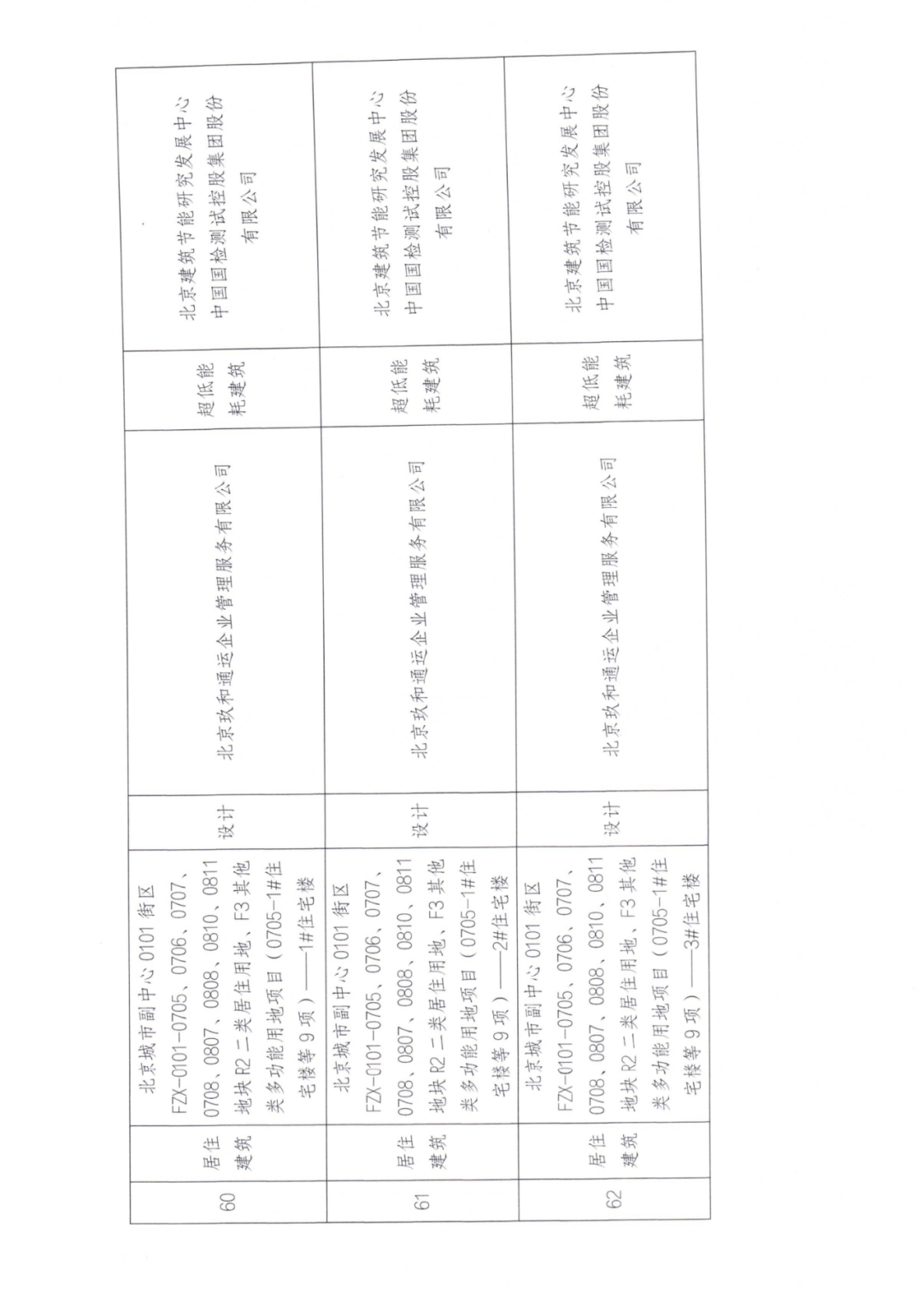 60 | 居住建筑 | 北京城市副中心0101街区FZX-0101-0705、0706、0707、0708、0807、0808、0810、0811地块R2二类居住用地、F3其他类多功能用地项目(0705-1#住宅楼等9项)——1#住宅楼 | 设计 | 北京玖和通运企业管理服务有限公司 | 超低能耗建筑 | 北京建筑节能研究发展中心 有限公司 |