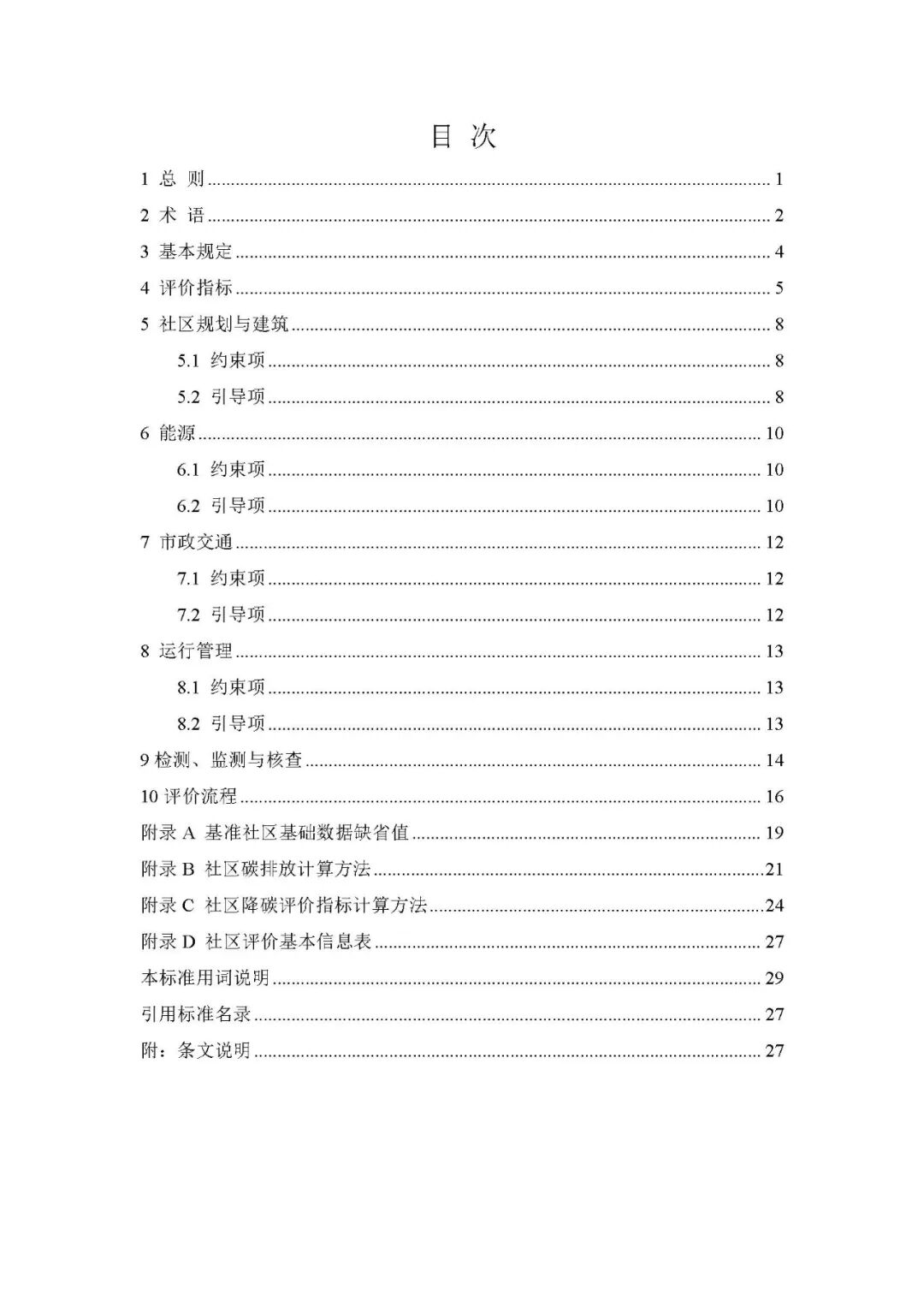 本标准适用于新建、扩建、改建以及既有改造的低碳、近零碳、零碳社区的符合性评价。本标准共有10章:1. 总则;2. 术语;3. 基本规定;4.评价指标;5. 社区规划与建筑;6. 能源;7. 市政交通;8. 运行管理;9. 检测、监测与核查;10. 评价流程。从社区碳排放计算边界、碳排放控制指标、降碳控制措施应用、降碳等级评价及检测、监测与核算方面提出了要求,引导社区逐步实现低碳、近零碳、零碳排放。对标准涉及的特有术语进行了定义,提出了零碳社区的分级定义。分别提出了不同气候分区、不同太阳总辐射年辐照量等级下的社区碳排放强度与降碳率指标。从社区规划、建筑布局、建筑节能降碳技术措施等方面明确了新建、扩建、改建以及既有降碳改造工程需要达到的降碳控制措施指标。从社区能源系统、可再生能源方面确定了评价指标与相关技术措施要求。提出了给排水、废弃物、社区照明、交通方面的评价指标要求,并给出引导性措施。针对运行阶段,提出引导居民节能降碳等方面的相关要求。规定了申请低碳、近零碳、零碳社区运行评价需提交的检测与监测与核查证明文件,明确了相关技术要求。